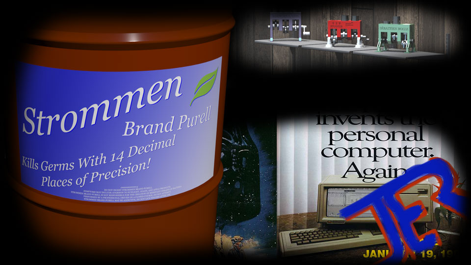 Easter eggs are inside jokes hidden the video. In the shop, you can see several drums of "Strommen Brand Purell", the 3-piston engines from the class DDGT240, along with many previous assignments such as the machine vise, any-angle tool vise, and Stillson wrench. The frame on the wall contains Mardell's logo, and Sebastien's can be seen briefly on the shipping crate for the new part. The Amplitude Engineering logo can be seen again on the working drawing in the foundry. Brandon's logo is on the side of the boxcar in the closing scene, and Jordan's is on the billboard in a marvelously vandalous way.