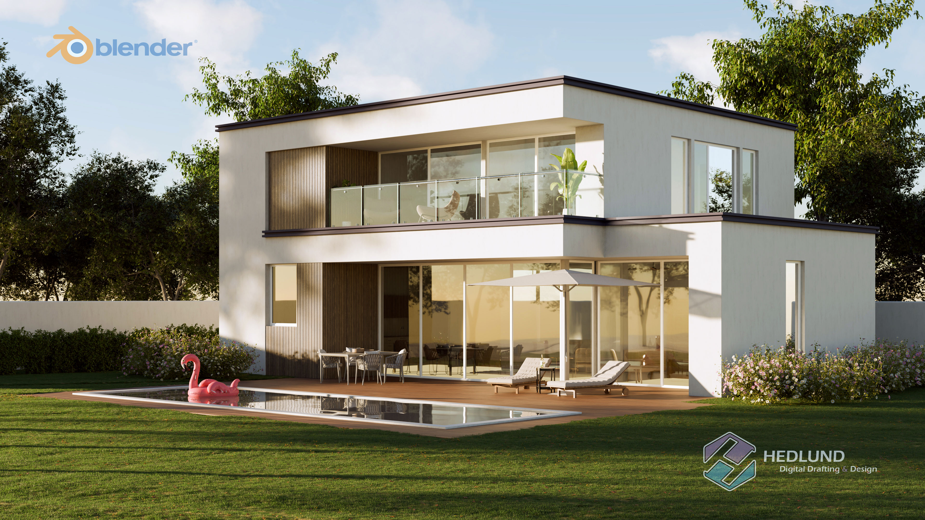Following iMeshh's Youtube tutorial, I modelled this exterior visualization from a floorplan using Blender.