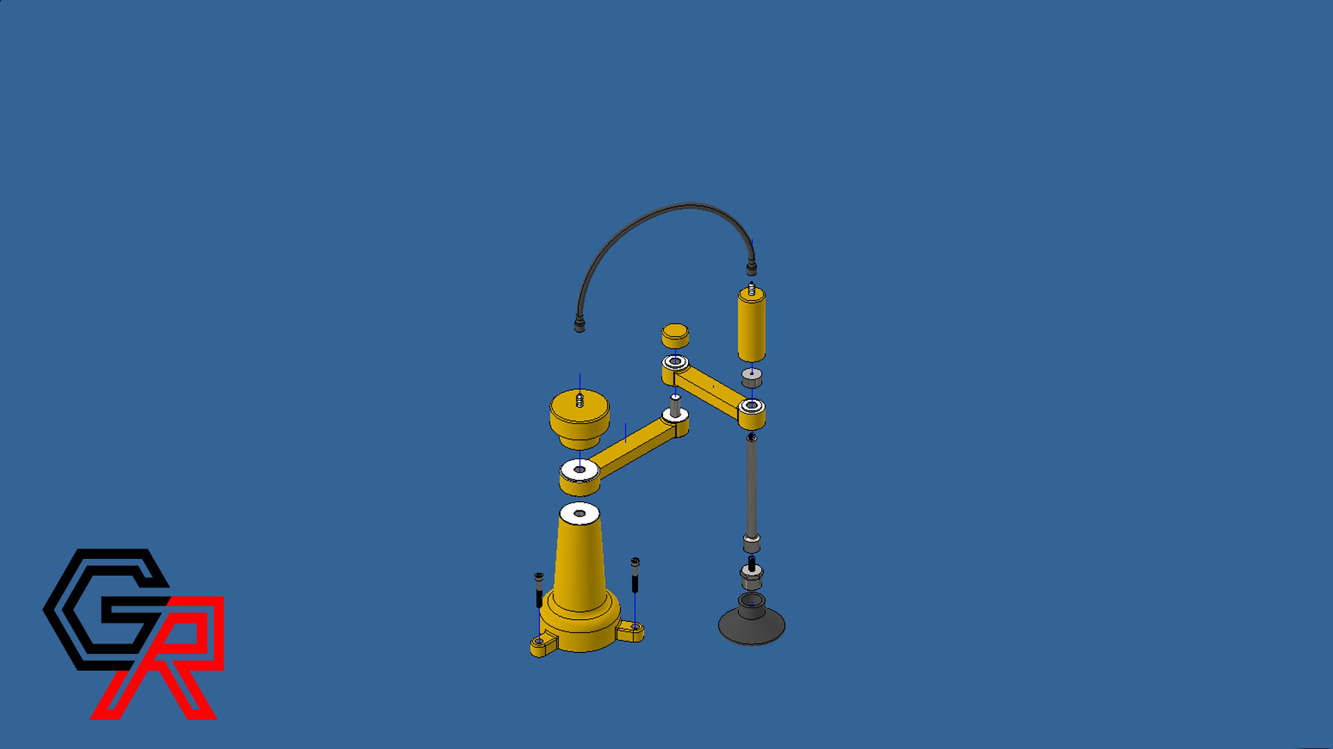In this Project I created a Robotic arm in both AutoCAD and Inventor. The most challenging program to 3D Model the arm was in AutoCAD because of the lack of 3D modeling Features that Inventor had. I was also allowed to make make assumptions or changes to the dimensions of the drawing if I felt they didn't make sense but I mostly stuck to the specified dimensions. A challege I was faced with was changing the sliding tube into two parts so that they could be assembled and disassembled. After modeling it in Inventor I imported the 3d Model into 3DSMax minus the rubber hose. The reason being that I set up a special tube in 3DSMax that would move and shift depending on the position of the Robotic Arm. The next Hurdle was making the Arm solve the Tower of Hanoi Puzzle in which you would have 3 or more disks each in a different size. You are given 3 Positions to place these disks however you are not allowed to put a bigger disks above a smaller disk. You start with all the disks in a neat tower on one side and your goal is to move that tower to the opposite end. I ended up only doing 3 disks because I was pressed for time and adding even one more disk is exponentially harder to animate. I first had to find the most optimal solution for 3 disks which was easy after playing around with the puzzle. I used IK solvers and constraints to force the individual parts to act as a real life assembly would and also to make animation easier. I Finally animated it then render out the project and added my intro and outro in Premiere Pro