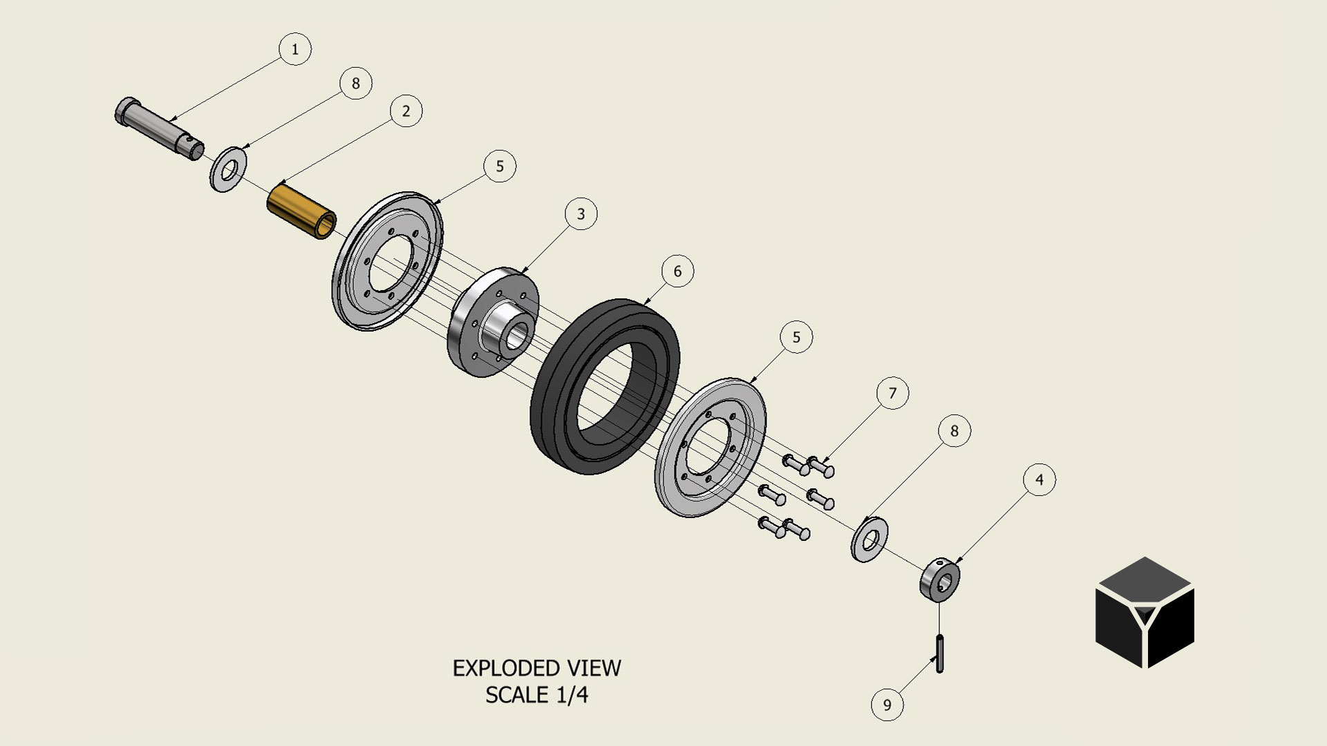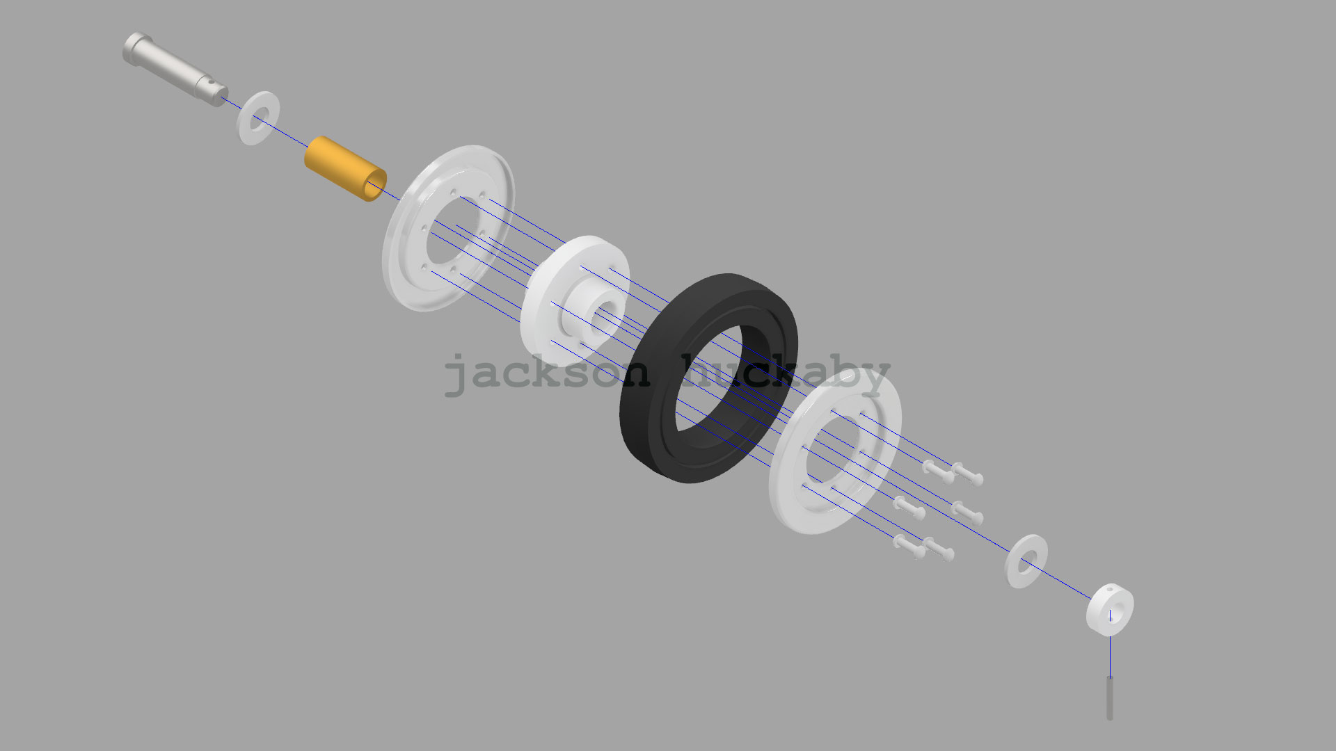 This was a project involving Autodesk Inventor which taught me quite a bit about how to make working drawings for assemblies in this software. All parts shown are modeled individually using the part design tools or imported from McMaster Carr's catalogue, then assembled as shown. Drawings are created using the drawing and presentation toolkits, used to create specific views, such as the exploded view shown in the "drawing preview" image below. Drawing set can be found here.