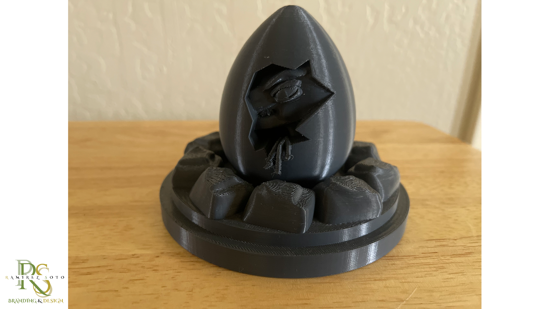 This is my project #1. This was supposed to be the easiest project, but I wanted to challenge myself and I wanted to make a hatching dinosaur egg. It took me a long time modeling the face, teeth and hands, but the result when I printed it was impressive.