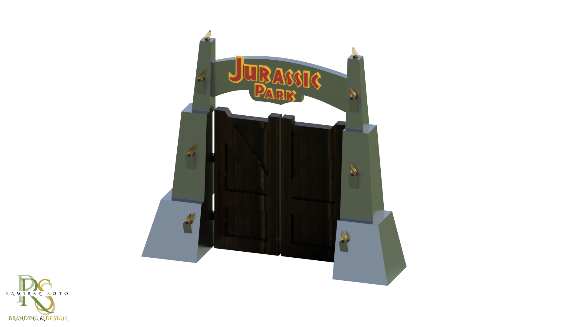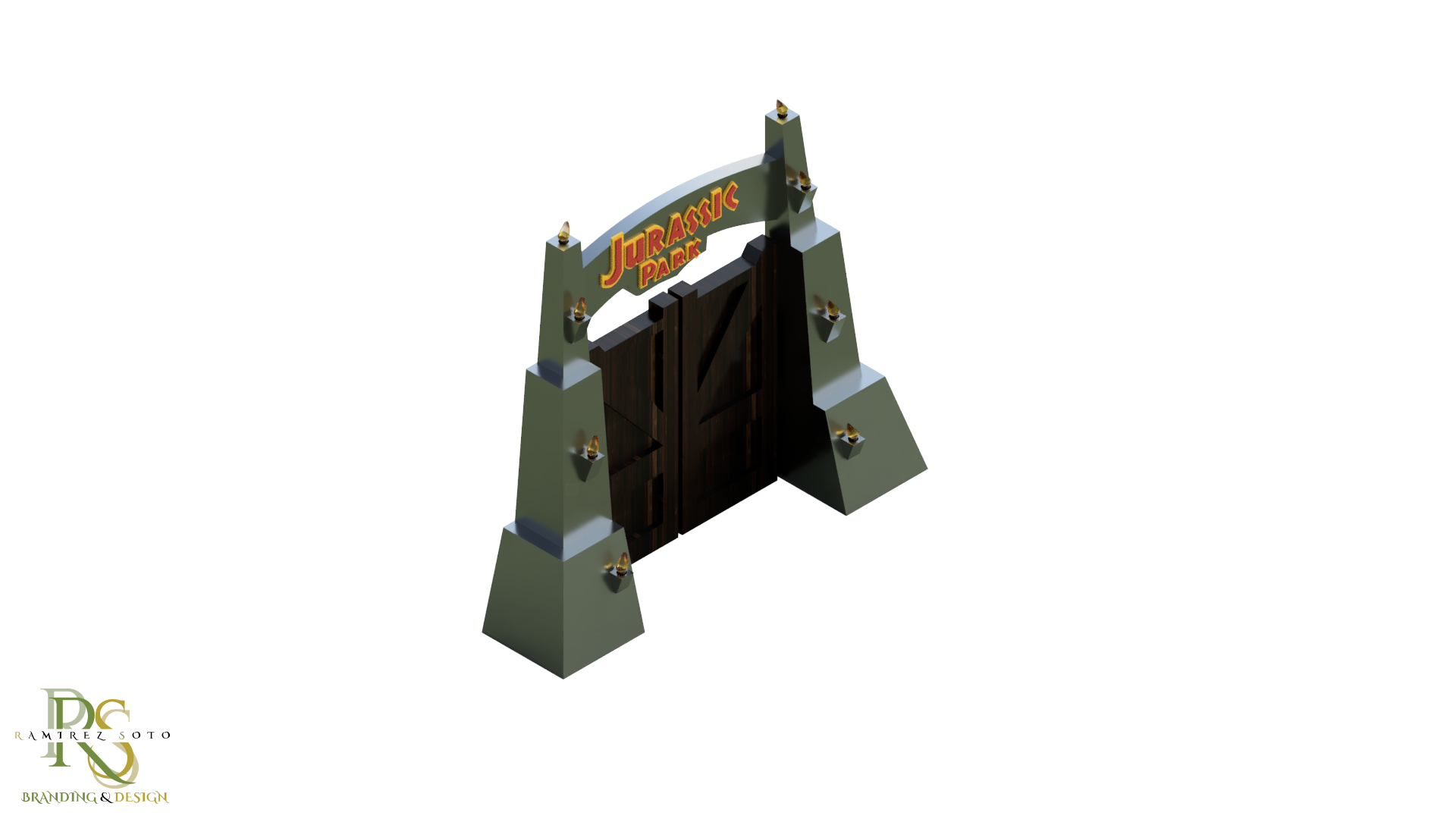 This is my project #2. For this project, a design had to be made that could be printed in different pieces so that it could be assembled, it should have movement, and it could also be printed with different colors. Wanting to continue with this dinosaur theme, I decided to make the much remembered Jurassic door.