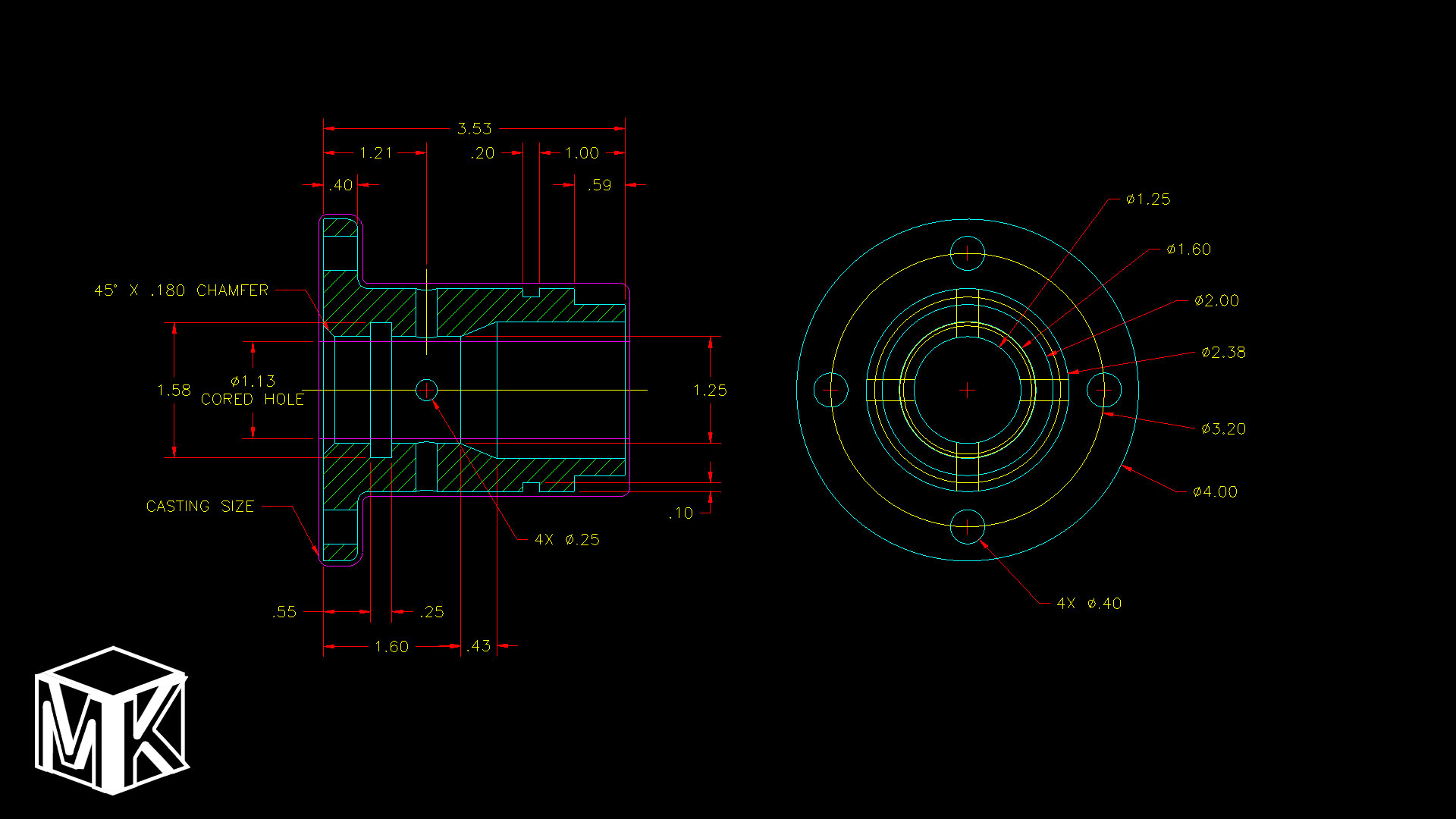 13-48 Connector Reverse Engineering This was a reverse engineering assignment for the second semester class of the Digital Design and Graphics Technology (DDGT) two-year program. We were tasked to gather dimension based off a 3D printed part and recreate it in AutoCAD using it and a reference drawing of a sand casting mold which it originated from. Because of this we were also required to recreate the outer mold design as part of the drawing along with a 3D model.