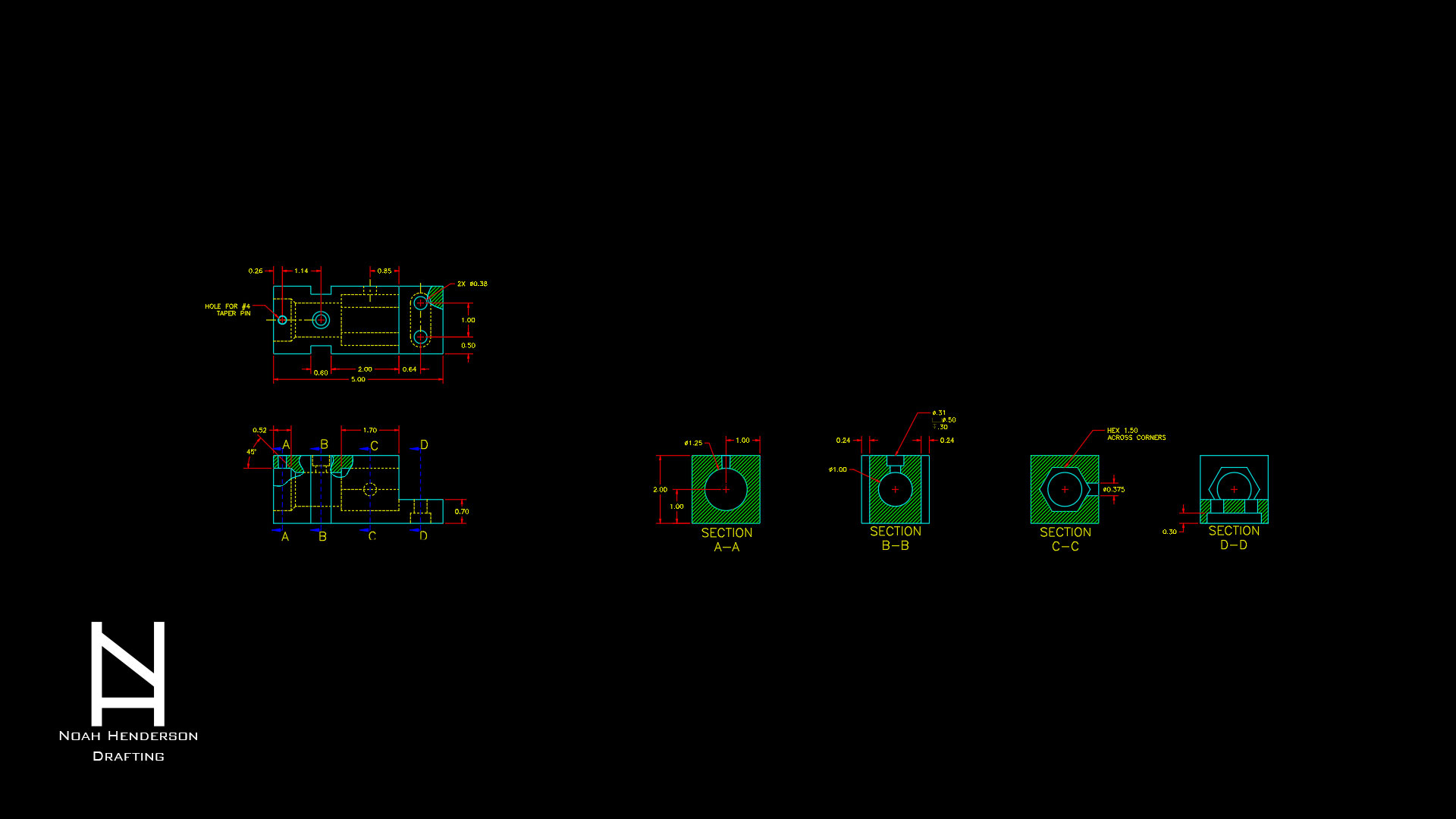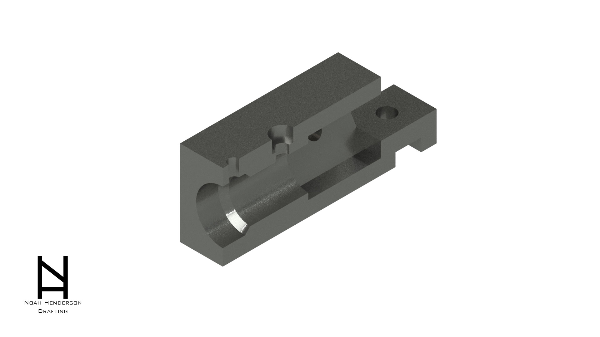 This was one of the first 3D part assignments. This assignment focused on learning section views. the part involved multiple sections of the part in 2D and 3D. The part had many features on the inside which provided a challenge.