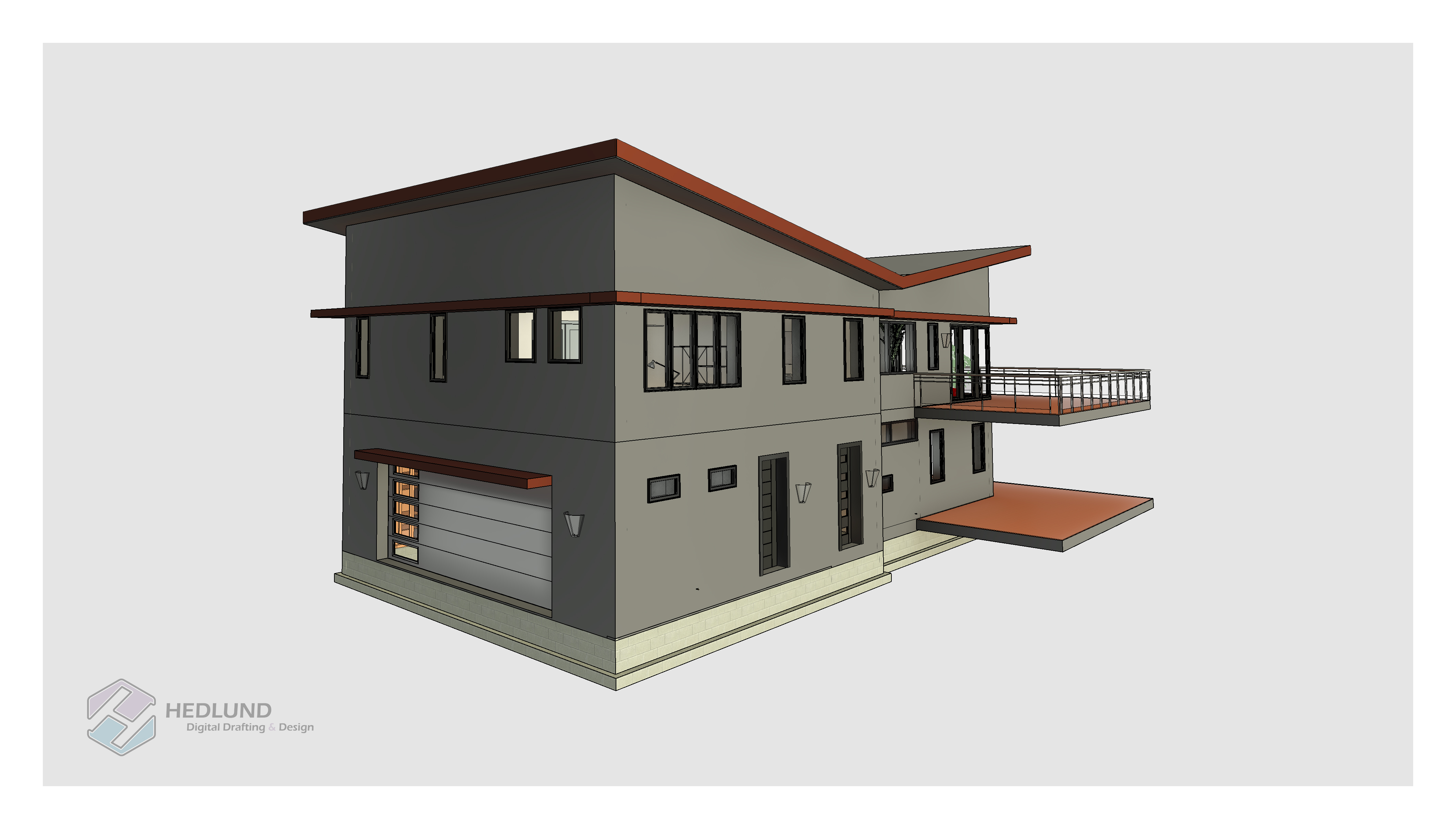 In this assignment I designed and constructed a residential structure using Revit software. Project instructions required a two-story home no more than 3,000 square-feet. The project taught both the design process, how to bring resulting ideas into Revit, and how to create construction documents.
