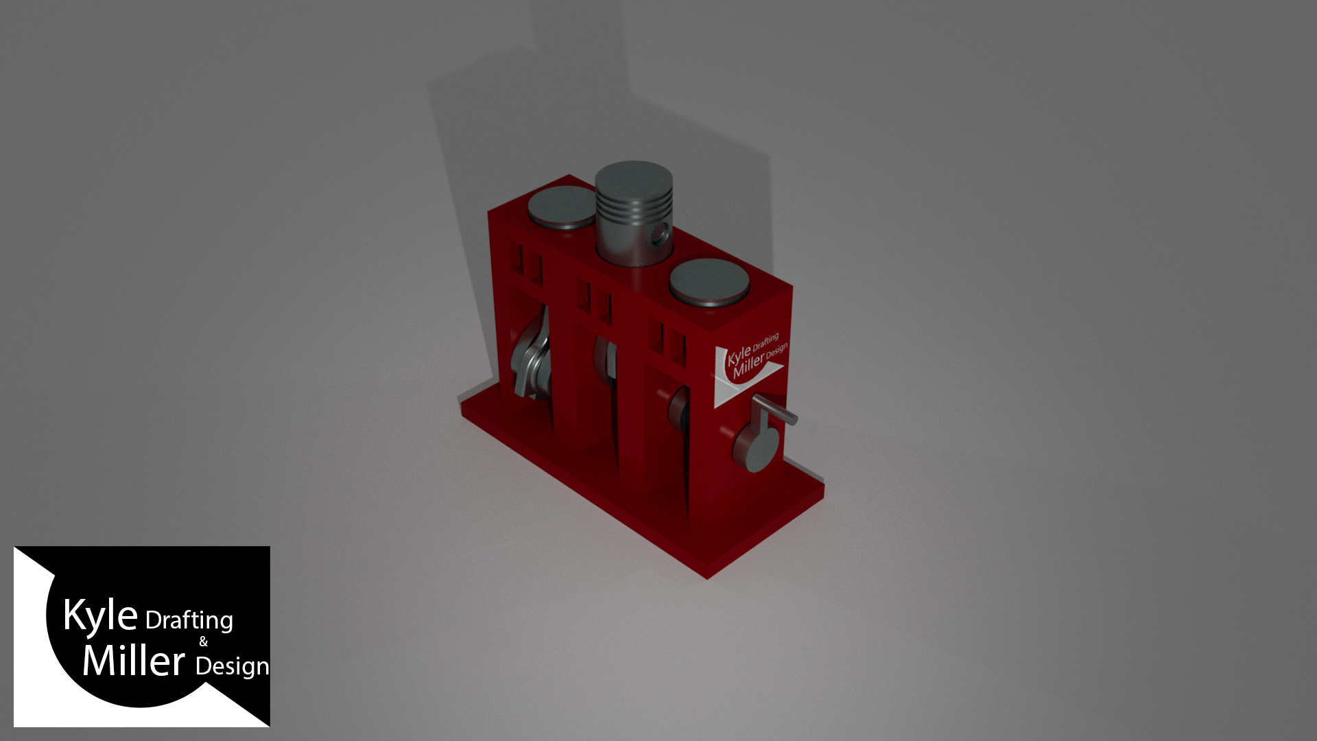 For this project, I used Autodesk Inventor to create the geometry and assemble it into a three piston engine.I then imported the geometry into 3ds Max and used that program to animate it in a process known as "rigging". I then applied materials and lighting to the project to improve it's appearance, and added an interesting camera path I could use for an animation. After that I rendered all of the frames that I needed and imported them into Adobe Premiere Pro to make the still images into a video.