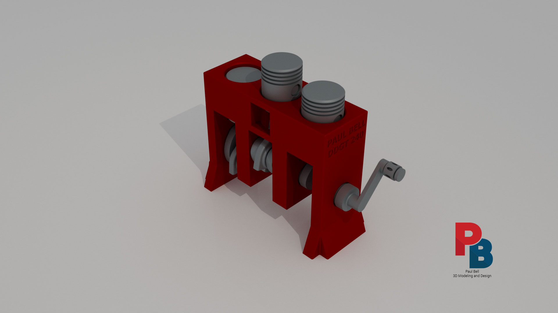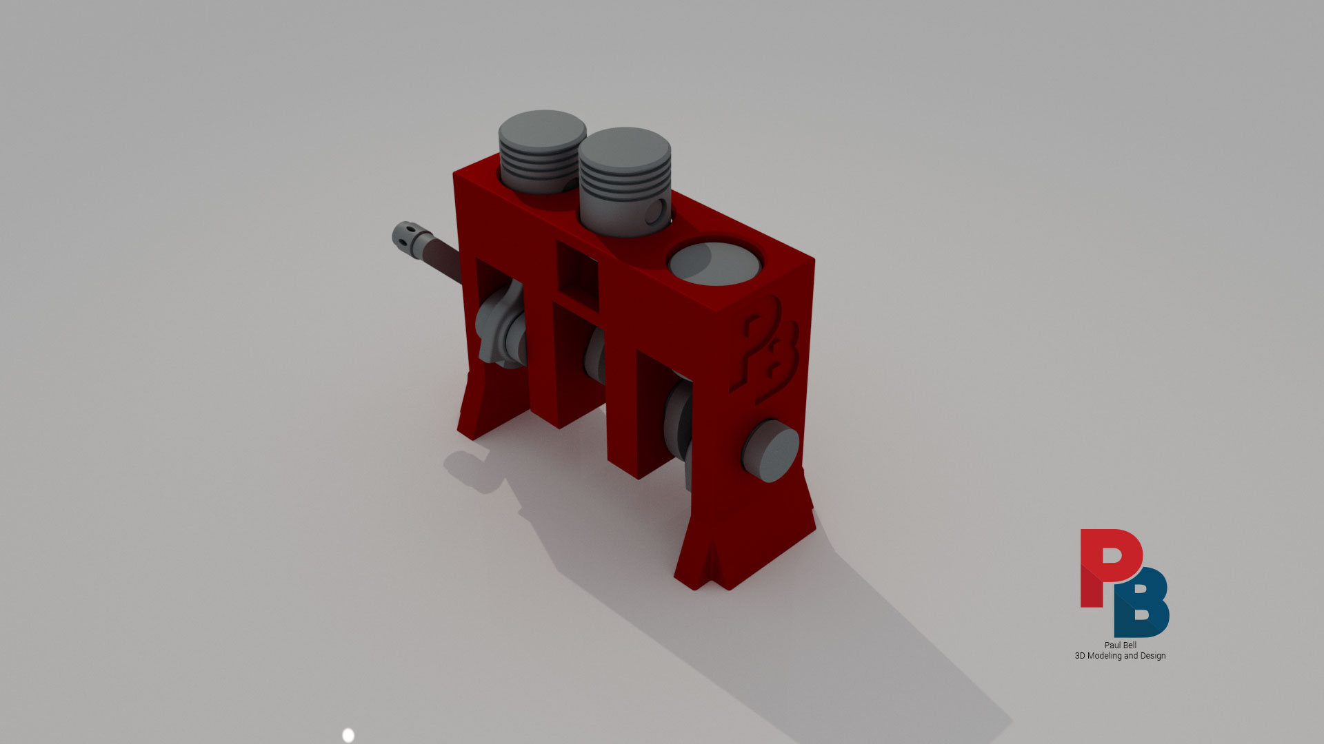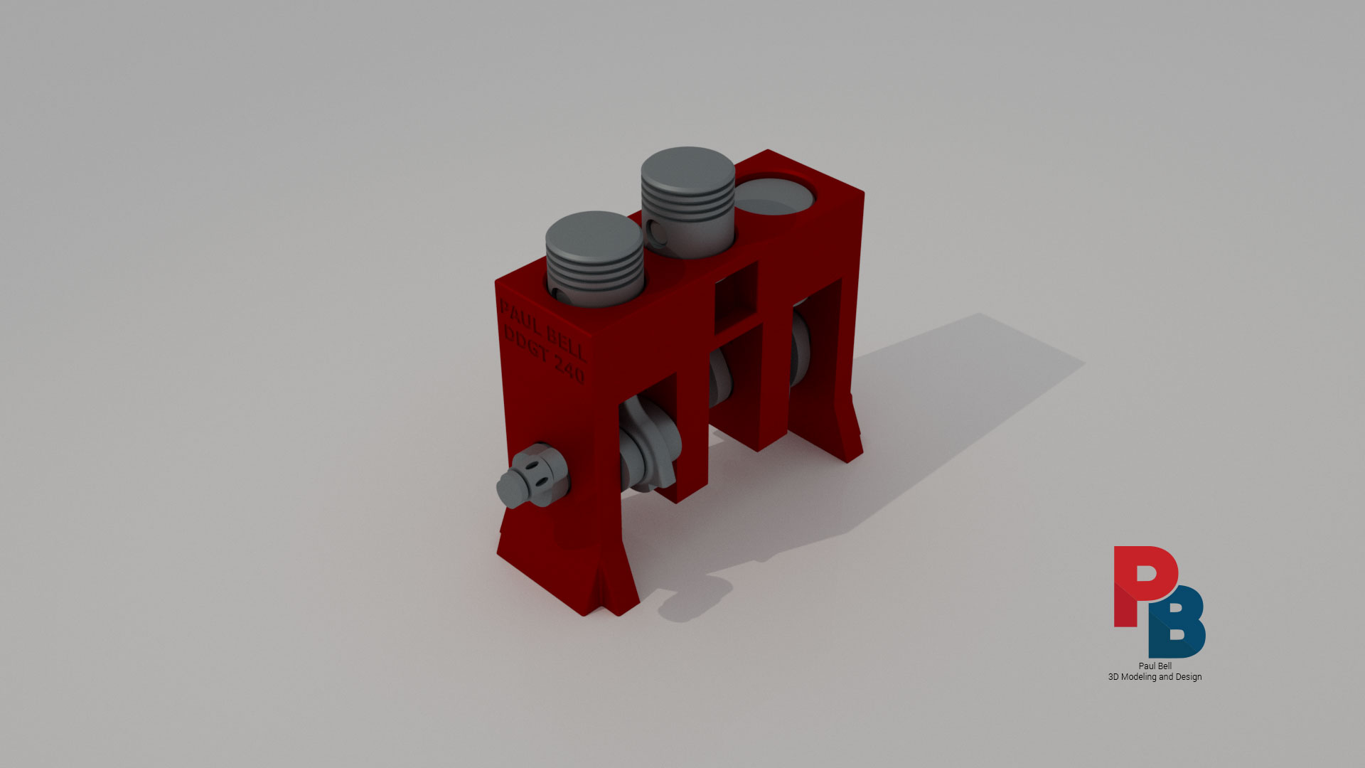This is a three-piston engine that I modeled in Inventor and animated in 3DS Max. This is similar to the Machine Vise assignment that was also modeled in Autodesk Inventor and animated in 3ds Max. Both projects were finalized in Premiere Pro. This was simpler in design and animation than the Machine Vise but required new skills in the process of animating the parts in the assembly. I was required to create a “bone structure” within the design (not viewable) in a process known as “rigging”. I animated the crankshaft in a repeating 360 degree rotational loop and then linked the connecting rods to the crankshaft for animation. The bone structure was used to make sure everything articulated properly. If you notice, the connecting rods rotated around the crankshaft but the piston heads only move up and down. This project also included an additional step. The original model was modified to specifically go to a 3D Printer and print as an assembly – not as a set of parts to be assembled. One modification specifically was to create a handle to manually spin the crankshaft. Another included adding feet to stabilize it so it could sit on a table. Clearances between parts also were adjusted to make sure that it printed correctly. These changes are reflected in the animation but the original can be seen in the PDF (link below). See the Machine Vise project here